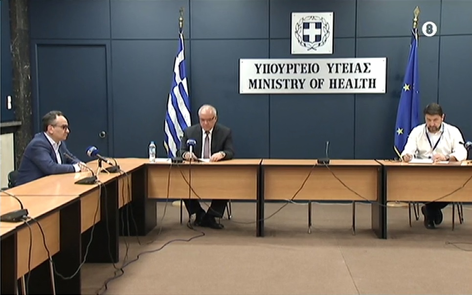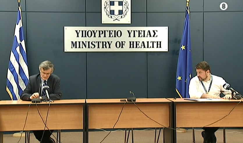 Ενημέρωση διαπιστευμένων συντακτών υγείας από τον Υφυπουργό Πολιτικής Προστασίας και Διαχείρισης Κρίσεων Νίκο Χαρδαλιά και τον εκπρόσωπο του Υπουργείου Υγείας για το νέο κορονοϊό, Καθηγητή Σωτήρη Τσιόδρα