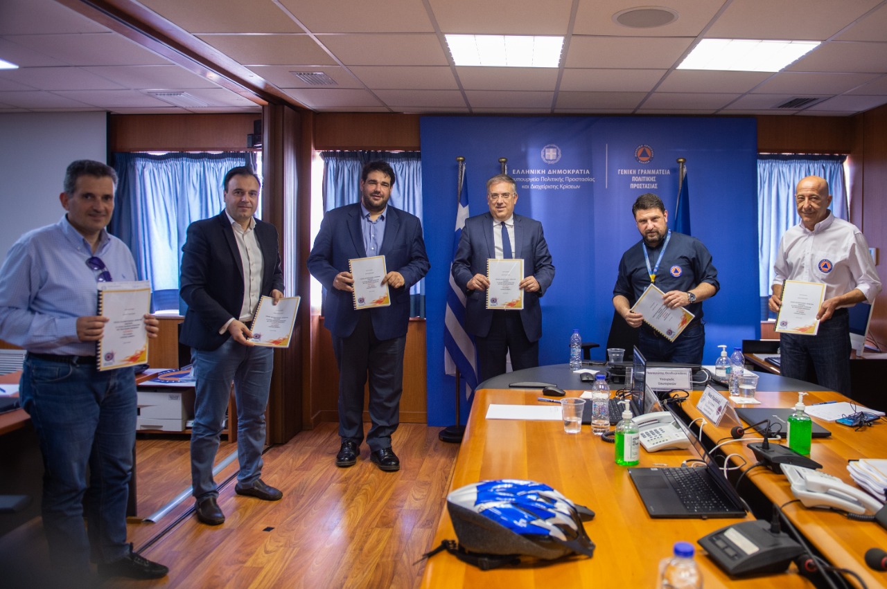 Κοινή Σύσκεψη του Υπουργείου Εσωτερικών, του Υφυπουργείου Πολιτικής Προστασίας & Διαχείρισης Κρίσεων και της ΚΕΔΕ για την Αντιπυρική Περίοδο. Παράδοση του Πρότυπου Σχεδίου των Δήμων στον Πρόεδρο της ΚΕΔΕ.