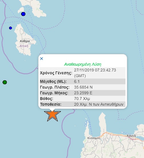 Ισχυρή σεισμική δόνηση στα Αντικύθηρα