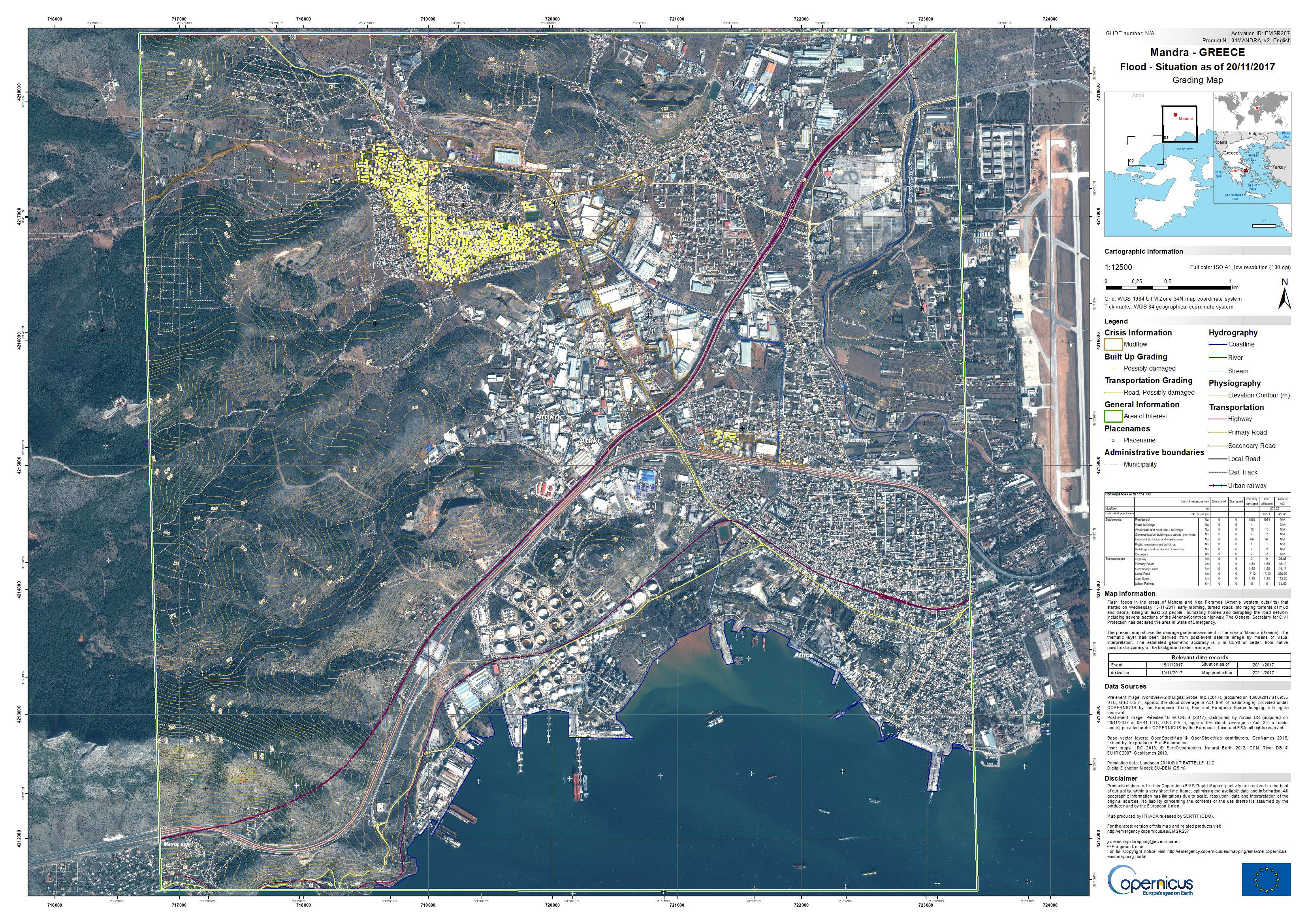 Διάθεση δεδομένων του Προγράμματος Copernicus/Emergency Management Service Mapping για τις πληγείσες από τα πλημμυρικά φαινόμενα περιοχές της Δυτικής Αττικής