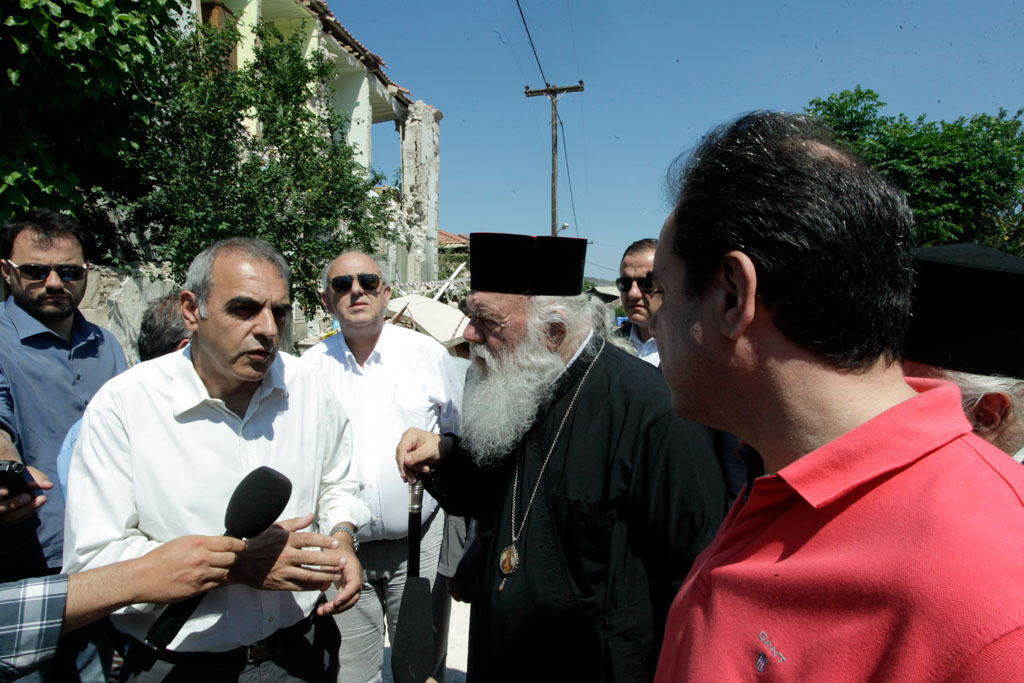 Ενημέρωση του Αρχιεπισκόπου Αθηνών και Πάσης Ελλάδος από τον Γενικό Γραμματέα Πολιτικής Προστασίας κατά την επίσκεψή του στο χωριό Βρίσα