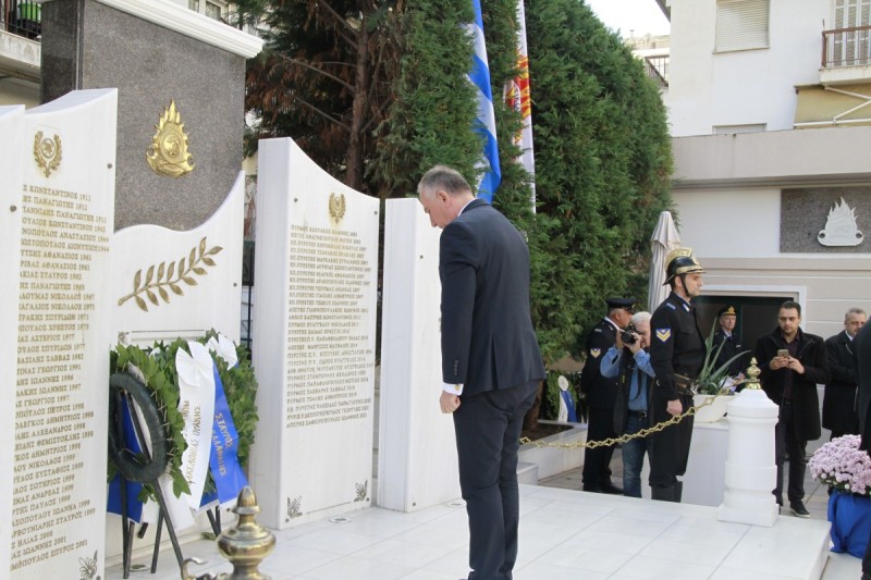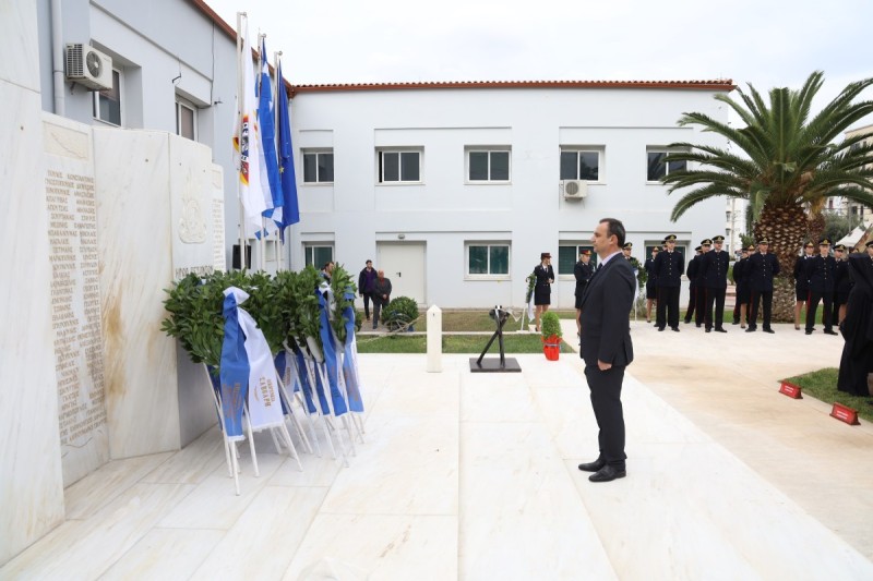 Ο Υφυπουργός Κλιματικής Κρίσης και Πολιτικής Προστασίας Ευάγγελος Τουρνάς, απηύθυνε χαιρετισμό δίνοντας ιδιαίτερη έμφαση στη σημερινή ημέρα και ανέφερε: «…με δέος, προσερχόμαστε σήμερα στο Ηρώο Πεσόντων Πυροσβεστών, για να αποτίσουμε φόρο τιμής στους ήρωες του Πυροσβεστικού Σώματος, οι οποίοι, με υψηλό το αίσθημα της ευθύνης έπεσαν εν ώρα καθήκοντος. Από την ημέρα εκείνη, του 1942, όταν το πάνθεον των ηρώων του Πυροσβεστικού Σώματος κόσμησε η θυσία του πρώτου πεσόντα, Δόκιμου Πυροσβέστη Β’ τάξεως, Κωνσταντίνου Πούλιου, έως σήμερα, 65 στελέχη του Πυροσβεστικού Σώματος δεν επέστρεψαν από το πεδίο της μάχης, εκτελώντας την αποστολή τους με θάρρος, ανδρεία και αυταπάρνηση. Είναι οι 65 Πυροσβέστριες και Πυροσβέστες, που ρίχτηκαν στη μάχη ενάντια στα στοιχεία της φύσης, με αυτοπεποίθηση, θάρρος και αποφασιστικότητα για να προστατεύσουν το φυσικό πλούτο της χώρας μας, την περιουσία και τη ζωή των συνανθρώπων τους και σε αυτή τη μάχη, που πολλές φορές είναι άνιση, θυσιάστηκαν για το κοινό καλό και πέρασαν στο βιβλίο των ΑΘΑΝΑΤΩΝ του Πυροσβεστικού Σώματος. Τιμώντας τη μνήμη της Ηρωΐδας Πυροσβέστριας και του Ήρωα Πυροσβέστη, που έπεσαν στο καθήκον, θεωρούμε χρέος μας τη διαρκή προσπάθεια για αναβάθμιση και θωράκιση του Πυροσβεστικού Σώματος, τόσο με ανθρώπινο δυναμικό, όσο και με τα πιο σύγχρονα μέσα και τις απαραίτητες υλικοτεχνικές υποδομές. Στόχος μας, όλοι οι Πυροσβέστες και οι Πυροσβέστριες να μπορούν να εκπληρώνουν άρτια την αποστολή τους, αντιμετωπίζοντας με ασφάλεια τις φυσικές απειλές και τις νέες προκλήσεις της κλιματικής κρίσης, και προστατεύοντας αποτελεσματικά το φυσικό περιβάλλον, τον δασικό πλούτο της χώρας μας, καθώς επίσης τη ζωή και την περιουσία του κάθε πολίτη. Σήμερα, μαζί με τους αθάνατους νεκρούς του Πυροσβεστικού Σώματος τιμούμε και τις οικογένειές τους, που έμειναν πίσω. Οικογένειες που από την μία στιγμή στην άλλη άλλαξε η ζωή τους, άλλαξε η καθημερινότητά τους. Οικογένειες που βίωσαν την απώλεια των δικών τους αγαπημένων ανθρώπων. Η σημερινή ημέρα για εμάς δεν είναι απλώς μια ημέρα μνήμης. Είναι μια ημέρα διδαχής για τον καταλυτικό ρόλο που οφείλουμε να διαδραματίσουμε, ενισχύοντας την επιχειρησιακή ικανότητα του Πυροσβεστικού Σώματος. Είναι η σειρά μας να τιμήσουμε ουσιαστικά τη θυσία των πεσόντων ηρώων, με αυξημένη ετοιμότητα, διαρκή εγρήγορση και καθοριστική συμβολή στη χάραξη μιας νέας σελίδας στο ιστορικό γίγνεσθαι του Πυροσβεστικού Σώματος. Μιας σελίδας που δεν θα περιλαμβάνει άλλο φόρο αίματος. Γι’ αυτό και χαράσσουμε άρτιες βάσεις εκπαίδευσης, ώστε κάθε Πυροσβέστης και κάθε Πυροσβέστρια να μπορούν να δρουν με τη μέγιστη δυνατή ασφάλεια και αποτελεσματικότητα στο πεδίο.