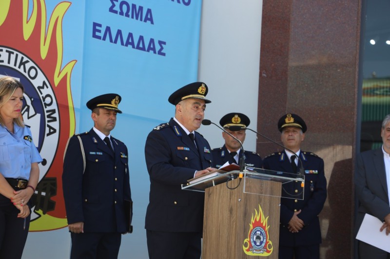 Κατά την έναρξη των εγκαινίων, ο Αρχηγός του Πυροσβεστικού Σώματος, Αντιστράτηγος Αλέξιος Ράπανος, στην ομιλία του ανέφερε: «Όπως κάθε χρόνο, το Πυροσβεστικό Σώμα συμμετέχει στη 86η Διεθνή Έκθεση Θεσσαλονίκης, που εδώ και δεκαετίες συνιστά σημαντικό εμπορικό, επιχειρηματικό και κοινωνικό γεγονός. Από τα εκθέματα ο επισκέπτης θα έχει την ευκαιρία να γνωρίσει ένα μέρος των τεχνολογικών καινοτομιών που έχουν ήδη ενταχθεί στον μηχανισμό του Πυροσβεστικού Σώματος, προσφέροντας πολύτιμη βοήθεια και λύσεις στο επιχειρησιακό πεδίο, βελτιώνοντας κατ αυτό τον τρόπο την ποιότητα των παρεχόμενων υπηρεσιών προς τους πολίτες. Η σημασία που δίνεται από την πλευρά μας στην ενσωμάτωση σύγχρονων τεχνολογιών και διαδικασιών επιχειρησιακής λειτουργίας είναι κομβικής σημασίας για την Πολιτεία, καθώς με αυτό τον τρόπο εξασφαλίζεται πληρέστερα η προστασία της ζωής, των περιουσιών και του περιβάλλοντος, ενώ ενδυναμώνεται το αίσθημα ασφάλειας στη χώρα. Επιπλέον, η τεχνολογική ενδυνάμωση του Πυροσβεστικού Σώματος παρέχει στη χώρα μας μεγαλύτερες δυνατότητες διεθνούς συνεργασίας, συνδρομής και αλληλεγγύης σε περιπτώσεις εκτάκτων αναγκών, σε μία εποχή παγκόσμιας έντασης των ακραίων κλιματικών φαινομένων και των συνεπαγόμενων απειλών και καταστροφών. Με αυτή την αντίληψη, συνεχούς και ευφυούς αναβάθμισης, το Πυροσβεστικό Σώμα, ως ο επιχειρησιακός βραχίονας της Πολιτικής Προστασίας, θέτει μεταξύ των προτεραιοτήτων του, την εκπαιδευτική ενδυνάμωση και τη μέριμνα για το σύνολο του προσωπικού του, το οποίο καλείται να φέρει εις πέρας τη δύσκολη και πολυσχιδή αποστολή του, και το οποίο θα ήθελα, και από το βήμα αυτό, να το συγχαρώ για τη διαχρονικά πρόθυμη εκτέλεση των καθηκόντων του, παρά τις όποιες αντιξοότητες. Και αυτή τη χρονιά, το Πυροσβεστικό Σώμα βρέθηκε αντιμέτωπο με δύσκολα συμβάντα και μεγάλες πυρκαγιές. Τα παρεχόμενα από την Πολιτεία μέσα και ο ζήλος του προσωπικού μας, ενισχυμένο φέτος με την προεγκατάσταση πυροσβεστικών δυνάμεων του ευρωπαϊκού μηχανισμού, συνέβαλλαν ώστε η αντιμετώπιση όλων αυτών να είναι άμεση και με τα καλύτερα δυνατά αποτελέσματα.