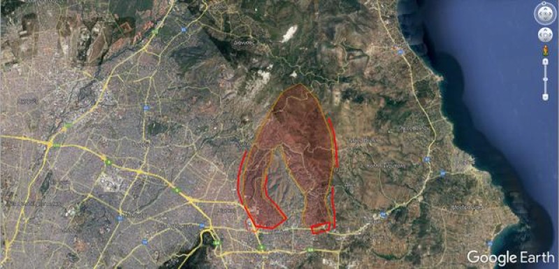 Σε συνέχεια της προηγούμενης ενημέρωσης για την πυρκαγιά στην Πεντέλη, αυτή εξελίσσεται στην περίμετρο που φαίνεται στο χάρτη.