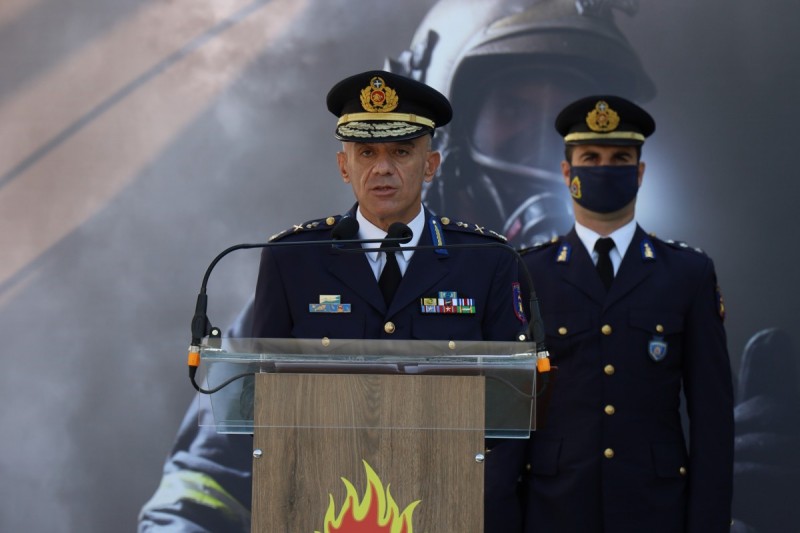 Στη συνέχεια ο Αρχηγός έκανε ιδιαίτερη αναφορά στην ευαισθητοποίηση των Ελλήνων και Ευρωπαίων πολιτών για την προστασία του περιβάλλοντος, ως μέρος της αποστολής του Πυροσβεστικού Σώματος και πρόσθεσε: « … όπως είναι γνωστό, βρεθήκαμε αντιμέτωποι με μεγάλες πυρκαγιές όπως αυτές στην Αττική, την Πελοπόννησο και την Εύβοια. Το δύσκολο ανάγλυφο, η μορφή της βλάστησης, ο ισχυρός άνεμος και η παρατεταμένη ξηρασία συντέλεσαν ώστε οι πυρκαγιές να πάρουν διαστάσεις και να δυσχεράνουν κάθε προσπάθεια καταστολής. Παρ’ όλα αυτά τόσο οι άνδρες όσο και οι γυναίκες του Πυροσβεστικού Σώματος εκτέλεσαν τα καθήκοντα τους με προθυμία, ζήλο και αυταπάρνηση και έφεραν εις πέρας με τον πιο αποτελεσματικό τρόπο την δύσκολη αποστολή τους εκθέτοντας σε κίνδυνο ακόμα και την ίδια τους την ζωή. Σε αυτήν την υπερπροσπάθειά μας συνέδραμαν οι ξένες δυνάμεις που ανταποκρίθηκαν άμεσα στο πλαίσιο της ενεργοποίησης του Ευρωπαϊκού Μηχανισμού αλλά και συνεργαζόμενοι με τους Έλληνες πυροσβέστες πολλές φορές ξεπέρασαν τα όρια τους και στους οποίους με την ευκαιρία αυτή, θέλω να εκφράσω ένα μεγάλο ευχαριστώ. Επίσης, στον αγώνα της δασοπυρόσβεσης συνεργαστήκαμε άριστα με τις Ένοπλες Δυνάμεις, τους συναδέλφους μας στα Σώματα Ασφαλείας, τους εθελοντές πυροσβέστες αλλά και με όλους τους φορείς της Περιφερειακής και Τοπικής Αυτοδιοίκησης για την επίτευξη του κοινού μας στόχου. Αποτέλεσμα αυτής της κοινής και συντονισμένης προσπάθειας ήταν το ότι και φέτος καταφέραμε να μην έχουμε καμία ανθρώπινη απώλεια παρά τον αριθμό, την ένταση και το μέγεθος των πυρκαγιών. Παρ’ όλα αυτά, η κλιματική κρίση, απ’ ότι φαίνεται, είναι εδώ δοκιμάζοντας τις αντοχές του μηχανισμού και τώρα περισσότερο από ποτέ διαφαίνεται ότι η συνεχής εκπαίδευση του Πυροσβεστικού προσωπικού, η ενημέρωση των πολιτών και η ενίσχυση της πολιτικής προστασίας είναι πλέον μονόδρομος».