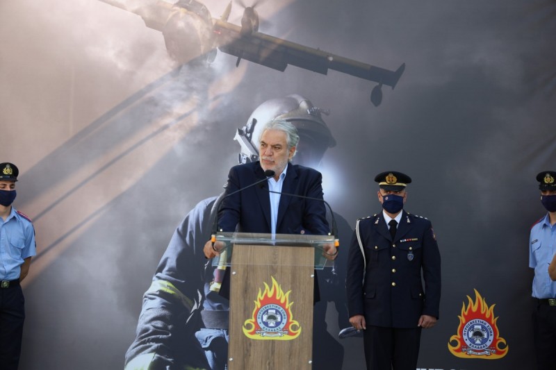 Κατά την ομιλία του, ο Υπουργός Κλιματικής Κρίσης και Πολιτικής Προστασίας Χρήστος Στυλιανίδης μεταξύ άλλων επεσήμανε: «… το Πυροσβεστικό Σώμα δε λέει πολλά, κάνει πολλά. Και ξεκινώ αφήνοντας τις ομιλίες που ετοιμάζονται για να μιλήσω από καρδιάς και να πάρω τη σκυτάλη από εκεί που την άφησε ο Αρχηγός. Ένα μεγάλο "ευχαριστώ" στον Μιχάλη Χρυσοχοΐδη και τον Νίκο Χαρδαλιά. Μας άφησαν μία βαριά κληρονομιά και πρέπει να χτίσουμε πάνω σε αυτή. Ο Αρχηγός μίλησε για τις ευρωπαϊκές και ξένες αποστολές που ήρθαν και βοήθησαν στην τελευταία μεγάλη πυρκαγιά. Ως Επίτροπος διαχείρισης κρίσεων, είχα έρθει και εκείνο το βράδυ στο Μάτι και είδα κάποιους από εσάς. Δυστυχώς, δεν προλάβαμε καν να φέρουμε οποιαδήποτε βοήθεια. Είχα έρθει και στην πρώτη, ουσιαστικά, πρωτοβουλία του RescEU το 2019, το καλοκαίρι στην Εύβοια. Κάποιοι θα το θυμάστε. Ήταν πολύ πετυχημένη εκείνη η προσπάθειά μας και εστέφθη υπό πλήρους επιτυχίας εξαιτίας και της αυταπάρνησης και γενναιότητας του Πυροσβεστικού Σώματος. Αυτές τις μέρες, πριν αναλάβω, όταν ήμουν σε διαβουλεύσεις με τον κύριο Πρωθυπουργό, είχα επαφές με την ηγεσία πολλών χωρών της Ευρωπαϊκής Ένωσης/κρατών-μελών και πήρα πληροφορίες για τη δράση τους όταν ήρθαν εδώ, στις τελευταίες πυρκαγιές. Μίλησα με τη Ρουμανική ηγεσία, με την Τσέχικη, με την Σλοβακική, με την Πολωνική, με τη Γαλλική, με όλους. Σας ομολογώ - και δεν είναι σχήμα λόγου και δεν μου αρέσει, καταρχήν, ούτε να κολακεύω ούτε είναι ο χαρακτήρας μου, δυστυχώς παραείμαι ντόμπρος - ότι ένιωσα περήφανος για το Ελληνικό Πυροσβεστικό Σώμα. Άκουσα τα καλύτερα λόγια και λόγια που έβγαιναν μέσα από την καρδιά τους. Έφεραν αυτοί το δικό τους know-how, τη δική τους καινοτόμο σκέψη, τις δικές τους ιδιαιτερότητες, αλλά όλοι μου είπαν ότι "βασιστήκαμε πάνω στη δουλειά του Ελληνικού Πυροσβεστικού Σώματος". Γι' αυτό, παρ' όλες τις αντιξοότητες, πρέπει να είναι περήφανο το ελληνικό Πυροσβεστικό Σώμα. Και έτσι πρέπει να συνεχίσουμε. Ότι έχουμε περιθώρια βελτίωσης, έχουμε. Παντού στη ζωή υπάρχουν περιθώρια βελτίωσης. Γι αυτό θα προσπαθήσουμε όλοι μας να καλύψουμε, κάποια κενά που υπάρχουν. Έτσι κι αλλιώς, σας λέω ότι παγκοσμίως υπάρχει ένα μεγάλο πρόβλημα στην κάλυψη των νέων κενών εξαιτίας του γεγονότος ότι η κλιματική αλλαγή, η κλιματική κρίση ήδη μας ξεπέρασε. Τρέχει με φοβερές ταχύτητες. Πρέπει να τρέξουμε κι εμείς και κυρίως στην πρόληψη, στην προετοιμασία αλλά και στα μέσα καταστολής …».