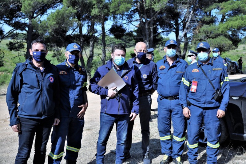 Παρουσία του Υφυπουργού Πολιτικής Προστασίας και Διαχείρισης Κρίσεων Νίκου Χαρδαλιά, του Γενικού Γραμματέα Πολιτικής Προστασίας Βασίλη Παπαγεωργίου, του αναπληρωτή Γενικού Γραμματέα Πολιτικής Προστασίας Γεώργιου – Μάριου Καραγιάννη, του Εθνικού Διοικητή Πολιτικής Προστασίας Θεοδόσιου Δημακογιάννη και του Αρχηγού Πυροσβεστικού Σώματος Αντιστράτηγου Στέφανου Κολοκούρη, πραγματοποιήθηκε σήμερα το πρωί στην Αττική, η άσκηση που αφορούσε την αντιμετώπιση δασικής πυρκαγιάς μεγάλης έκτασης που εκδηλώθηκε στο ύψωμα «Κοσμοθέα», πλησίον του οικισμού Δροσοπηγής στην Ανατολική πλευρά του ορεινού όγκου της Πάρνηθας, μεταξύ της δημοτικής ενότητας Αφιδνών, της δημοτικής κοινότητας Κρυονερίου και των στρατιωτικών εγκαταστάσεων της 651 ΑΒΥΠ, στην περιοχή του Δήμου Ωρωπού.