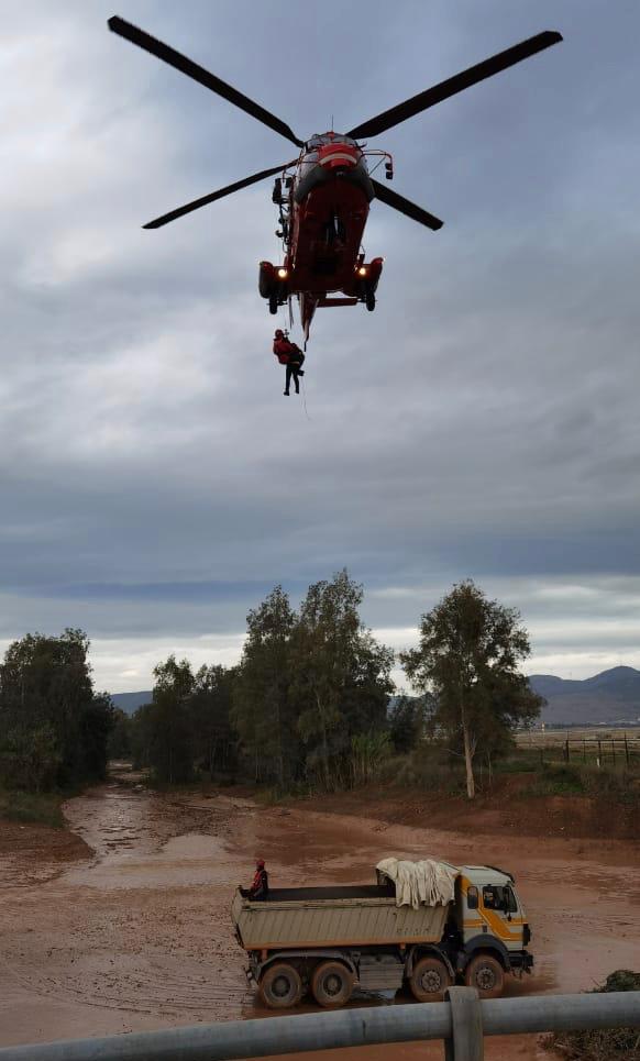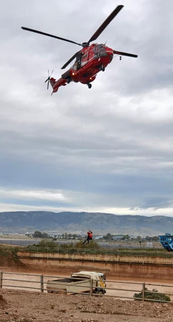 - Διάσωση ατόμου από φορτηγό όχημα που παρασύρθηκε από τα ορμητικά νερά και