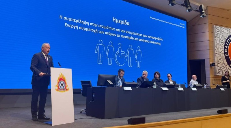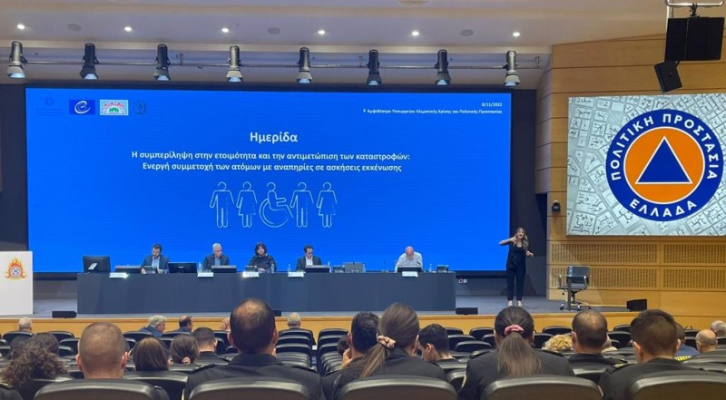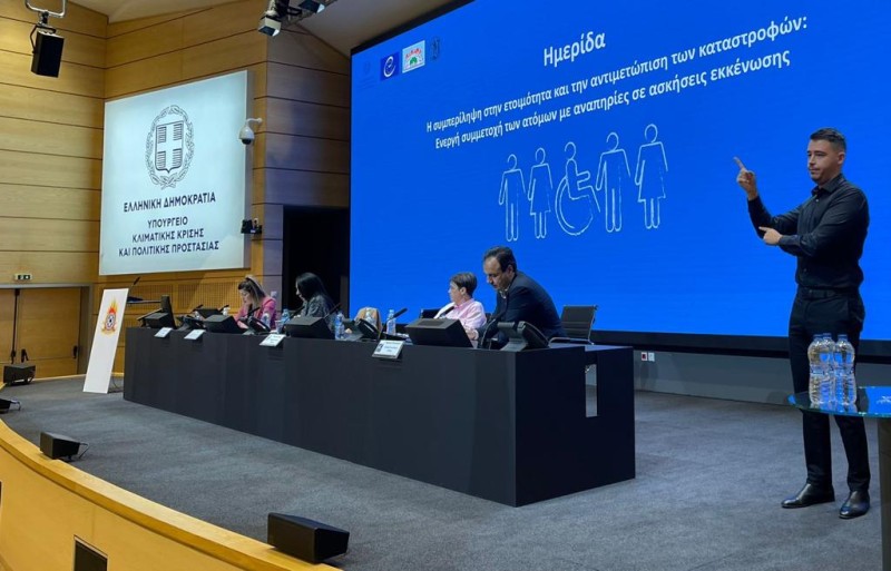 Με επιτυχία ολοκληρώθηκαν οι εργασίες της ημερίδας με θέμα «Η συμπερίληψη στην ετοιμότητα και την αντιμετώπιση των καταστροφών: Ενεργή συμμετοχή των ατόμων με αναπηρίες σε ασκήσεις εκκένωσης» που διοργανώθηκε σήμερα στις εγκαταστάσεις του Υπουργείου Κλιματικής Κρίσης και Πολιτικής Προστασίας, με συμμετοχή εκπροσώπων της κοινότητας των ατόμων με αναπηρίες, της ακαδημαϊκής κοινότητας, εμπειρογνωμόνων και επιχειρησιακών παραγόντων. Σκοπός της ημερίδας ήταν η ανταλλαγή απόψεων και εμπειριών, η καταγραφή υφιστάμενων περιορισμών και νομοθετικών / επιχειρησιακών κενών, καθώς και η ανοιχτή συζήτηση προτάσεων για την ενίσχυση της ικανότητας ευπαθών ομάδων να αντιμετωπίσουν αποτελεσματικά καταστάσεις έκτακτης ανάγκης.