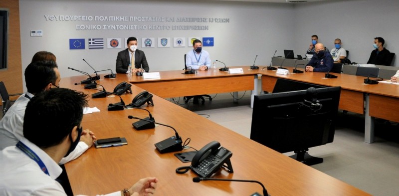 Ακολούθησε σύσκεψη με στελέχη της Πολιτικής Προστασίας και στη συνέχεια, πραγματοποιήθηκαν δηλώσεις: