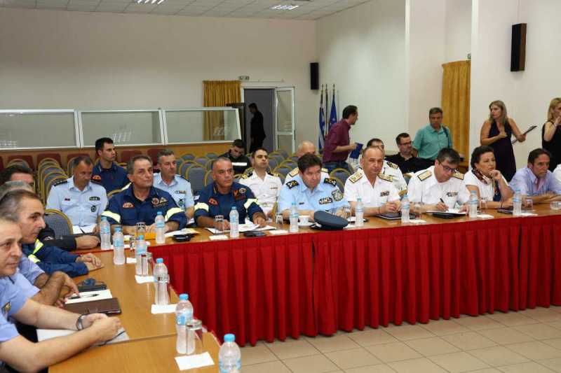 Στην σύσκεψη συμμετείχαν ο Ειδικός Γραμματέας Πολιτικής Προστασίας, ο Υπαρχηγός ΓΕΕΘΑ, ο Αρχηγός της ΕΛ.ΑΣ, ο Αρχηγός του Πυροσβεστικού Σώματος, ο Αρχηγός του Λιμενικού Σώματος, η Περιφερειάρχης Αττικής και οι αρμόδιοι Αντιπεριφερειάρχες, εκπρόσωπος της ΚΕΔΕ, εκπρόσωπος της Αποκεντρωμένης Διοίκησης Αττικής, ο Πρόεδρος του ΕΚΕΠΥ, εκπρόσωπος του ΕΚΑΒ και εκπρόσωπος της Γενικής Διεύθυνσης Δασών και Δασικού Περιβάλλοντος, καθώς και εκπρόσωποι της ΔΕΔΔΗΕ και ΑΔΜΗΕ.
