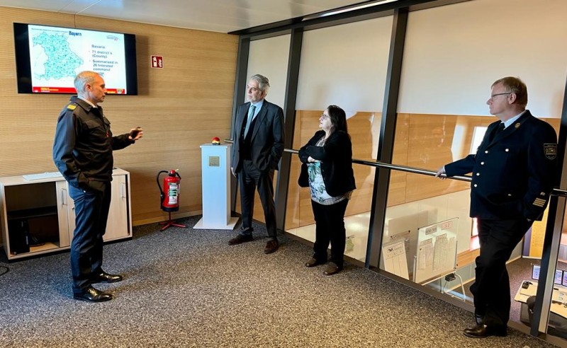 Ο κ. Στυλιανίδης επισκέφθηκε, επίσης, το Κέντρο Επιχειρήσεων της Πυροσβεστικής, όπου συζήτησε με εκπροσώπους του Υπουργείου Εσωτερικών, του Πυροσβεστικού Σώματος Μονάχου και της Κρατικής Σχολής Πυροσβεστικού Σώματος Μονάχου για μια σειρά θεμάτων, με έμφαση στην οργάνωση του μηχανισμού Πολιτικής Προστασίας στη Βαυαρία, ζητήματα δασοπυρόσβεσης, καθώς και στο σύστημα προληπτικής εναέριας επιτήρησης του κρατιδίου.