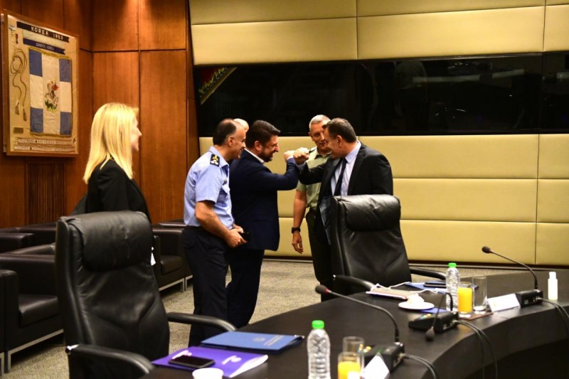Στη σύσκεψη συμμετείχαν επίσης, ο Γενικός Γραμματέας του Υπουργείου Εθνικής Αμύνης Αντώνιος Οικονόμου, ο Γενικός Γραμματέας Πολιτικής Προστασίας Βασίλειος Παπαγεωργίου, οι Αρχηγοί Γ.Ε.Α. Αντιπτέραρχος (Ι) Γεώργιος Μπλιούμης, Γ.Ε.Σ. Αντιστράτηγος Χαράλαμπος Λαλούσης, Γ.Ε.Ν. Αντιναύαρχος Στυλιανός Πετράκης Π.Ν., ο Υπαρχηγός του Π.Σ., Αντιστράτηγος Ιάκωβος Κλεφτοσπύρος, ο Προϊστάμενος Α΄ Κλάδου Επιχειρήσεων Π.Σ. Υποστράτηγος Γεώργιος Πουρναράς, ο Διοικητής του Ενιαίου Συντονιστικού Κέντρου Επιχειρήσεων και Διαχείρισης Κρίσεων (Ε.Σ.Κ.Ε.ΔΙ.Κ) Π.Σ. Υποστράτηγος Σπυρίδων Πέτρου και άλλοι αρμόδιοι.