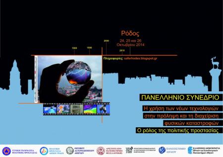 Στο διάστημα 24-26 Οκτωβρίου 2014, θα πραγματοποιηθεί στη Ρόδο συνέδριο με τίτλο «Η χρήση των νέων τεχνολογιών στην πρόληψη & τη διαχείριση φυσικών καταστροφών - Ο ρόλος της Πολιτικής Προστασίας» (πληροφορίες για το Συνέδριο στην ηλ/κη δ/νση: http://saferhodes.blogspot.gr/ ).Την ευθύνη οργάνωσης του Συνεδρίου την έχει ο Δήμος Ρόδου ενώ υποστηρίζουν οι παρακάτω φορείς: