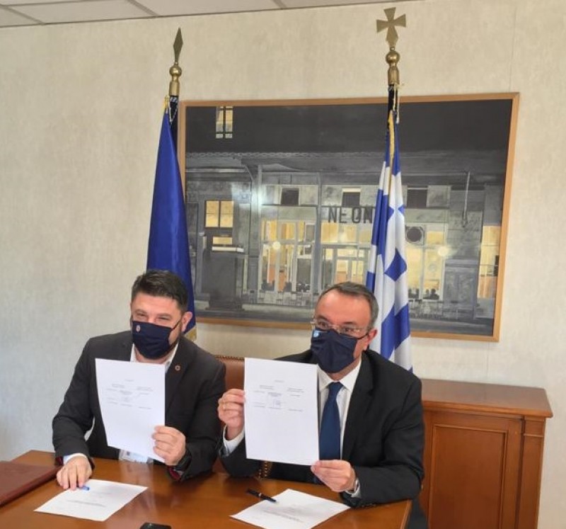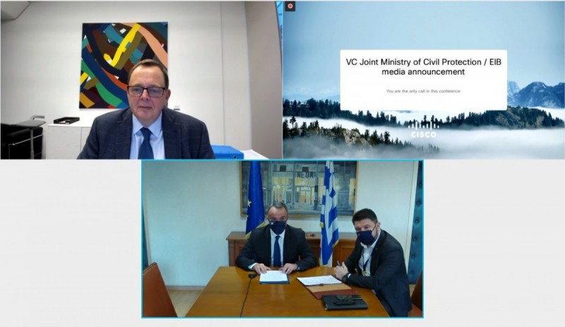 Υπεγράφη σήμερα στο Υπουργείο Οικονομικών, η συμφωνία χρηματοδότησης μεταξύ της Πολιτικής Προστασίας και της Ευρωπαϊκής Τράπεζας Επενδύσεων (ΕΤΕπ) από τον Υπουργό Οικονομικών, Χρήστο Σταϊκούρα, τον Υφυπουργό Πολιτικής Προστασίας και Διαχείρισης Κρίσεων, Νίκο Χαρδαλιά και τον Αντιπρόεδρο της ΕΤΕπ, ChristianKettelThomsen.
