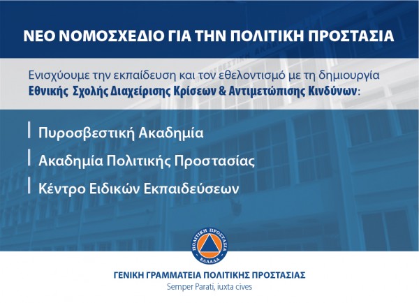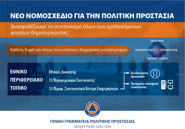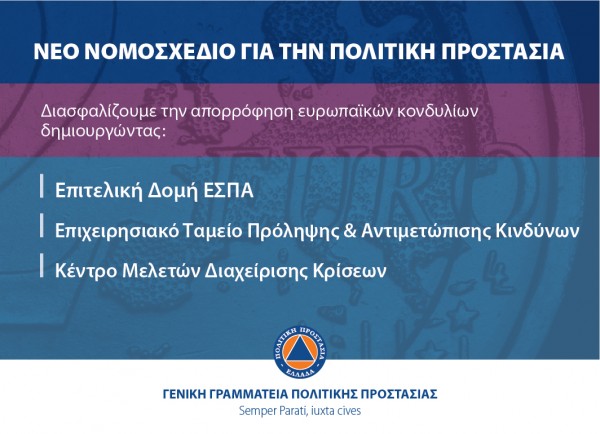 Ο Γενικός Γραμματέας Πολιτικής Προστασίας, Νίκος Χαρδαλιάς, παρέδωσε την Παρασκευή, 24 Ιανουαρίου 2020, στη Βουλή το νέο σχέδιο νόμου του Υπουργείου Προστασίας του Πολίτη: «Εθνικός Μηχανισμός Διαχείρισης Κρίσεων και αντιμετώπισης Κινδύνων, αναδιάρθρωση της ΓΓΠΠ, αναβάθμιση Εθελοντισμού Πολιτικής Προστασίας, αναδιοργάνωση του Πυροσβεστικού Σώματος και άλλες διατάξεις».