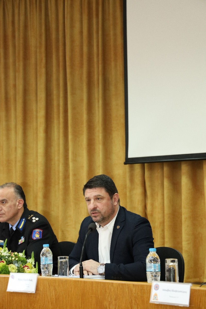 Τέλος, νωρίτερα, είχε προηγηθεί σύσκεψη του Γενικού Γραμματέα με τον Διευθυντή και τα στελέχη της Διεύθυνσης Αντιμετώπισης Εγκλημάτων Εμπρησμού (Δ.Α.Ε.Ε), παρουσία της Ηγεσίας του ΠΣ, κατά την οποία συζητήθηκαν θέματα βελτίωσης της λειτουργίας του ανακριτικού έργου, καθώς και θέματα εκσυγχρονισμού της Δ.Α.Ε.Ε., αλλά και όλων των Ανακριτικών Γραφείων της χώρας.