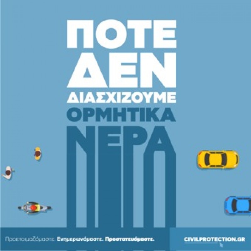 - ΠΟΤΕ δεν διασχίζουμε ορμητικά νερά πεζή ή με όχημα.