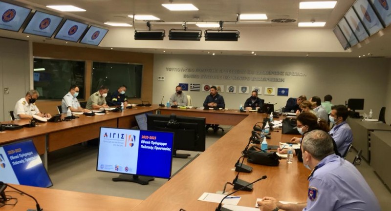 Κατά τη σημερινή ευρεία σύσκεψη που πραγματοποιήθηκε στο κτίριο Φάρος, ο Υφυπουργός Πολιτικής Προστασίας και Διαχείρισης Κρίσεων, Νίκος Χαρδαλιάς, παρουσίασε τους κεντρικούς άξονες του Εθνικού Σχεδίου 2021-2023 για την Πολιτική Προστασία με την κωδική ονομασία «ΑΙΓΙΣ», στο πλαίσιο του οποίου εντάσσεται το χρηματοδοτικό πρόγραμμα ΕΣΠΑ και το οποίο προβλέπει τη σε βάθος τριετίας ολική αναμόρφωση του μηχανισμού Πολιτικής Προστασίας της χώρας μας, καθώς και την προμήθεια νέου εξοπλισμού για όλους τους φορείς που συνδράμουν την Πολιτική Προστασία στο έργο της (Πυροσβεστικό Σώμα, Ελληνική Αστυνομία, Ένοπλες Δυνάμεις, Λιμενικό Σώμα, ΕΚΑΒ).