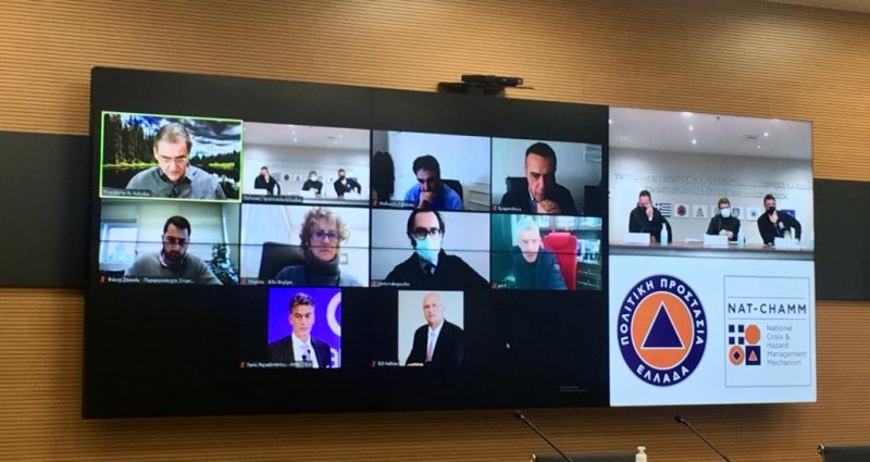 Ολοκληρώθηκε η νέα σύσκεψη που πραγματοποιήθηκε σήμερα υπό τον Υπουργό Προστασίας του Πολίτη, Μιχάλη Χρυσοχοΐδη και τον Υφυπουργό Πολιτικής Προστασίας και Διαχείρισης Κρίσεων, Νίκο Χαρδαλιά, παρουσία του Αναπληρωτή Υπουργού Εσωτερικών αρμόδιου για θέματα Αυτοδιοίκησης, Στέλιου Πέτσα και του Υφυπουργού παρά τω Πρωθυπουργώ στον Υπουργό Επικρατείας, Θεόδωρου Λιβάνιου, στο Κέντρο Επιχειρήσεων της Πολιτικής Προστασίας (κτίριο Φάρος).