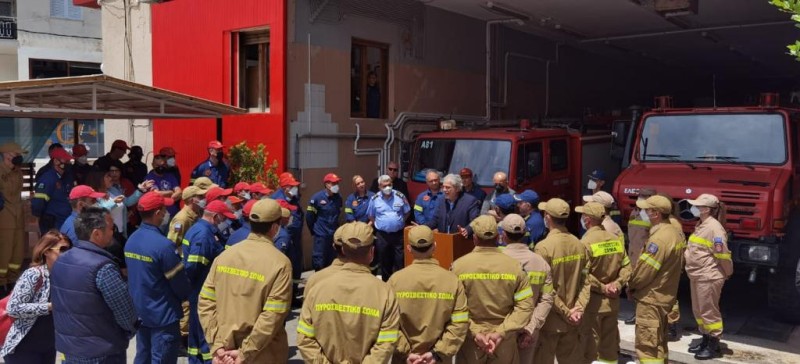 Απευθυνόμενος σε Πυροσβέστες, ο ίδιος υπογράμμισε: «Έχει αλλάξει το δόγμα μας και φέτος κινούμαστε περισσότερο στην ενίσχυση της πρόληψης, παρά στην καταστολή. Χρειάζεται, βέβαια, χρόνος. Έχουμε περάσει σε μία πιο επιστημονική τεκμηρίωση, των αναλύσεων και των δεδομένων μας για να είμαστε πιο αποτελεσματικοί επί του πεδίου, αλλά τις πυρκαγιές δεν τις σβήνουν ούτε τα εναέρια μέσα, ούτε τα προληπτικά μέτρα. Τις σβήνετε εσείς, εσείς είστε οι ήρωες επί του πεδίου, η αναγνώριση και η εκτίμηση της κοινωνίας πρέπει να είναι προς τα πρόσωπά σας», τονίζοντας ότι παράλληλα, χρειάζεται η κοινωνία, οι πολίτες, να είναι σύμμαχοι της Πολιτείας σε αυτή την προσπάθεια. «Θέλουμε κάθε πολίτη σύμμαχο, ώστε μην προκαλούνται πυρκαγιές από ανθρώπινη αμέλεια, καθώς δυστυχώς το 95% των πυρκαγιών οφείλεται σε ανθρώπινη αμέλεια. Θέλουμε να έχουμε τον πολίτη δίπλα μας, σωστά ενημερωμένο», συμπλήρωσε.