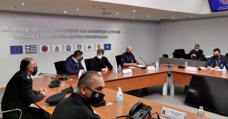 Σε υπηρεσιακό επίπεδο, στη σύσκεψη έλαβαν επίσης μέρος ο Γενικός Διευθυντής Συντονισμού της Γενικής Γραμματείας Πολιτικής Προστασίας, Φοίβος Θεοδώρου, ο Διευθυντής Σχεδιασμού και Αντιμετώπισης Έκτακτων Αναγκών, Δημήτρης Αλεξανδρής, ο Διευθυντής Διεθνών Σχέσεων, Αντιπύραρχος Σπύρος Γεωργίου, καθώς και η Σύμβουλος Επικοινωνίας και Στρατηγικού Σχεδιασμού, Ελένη Μπόμπου.
