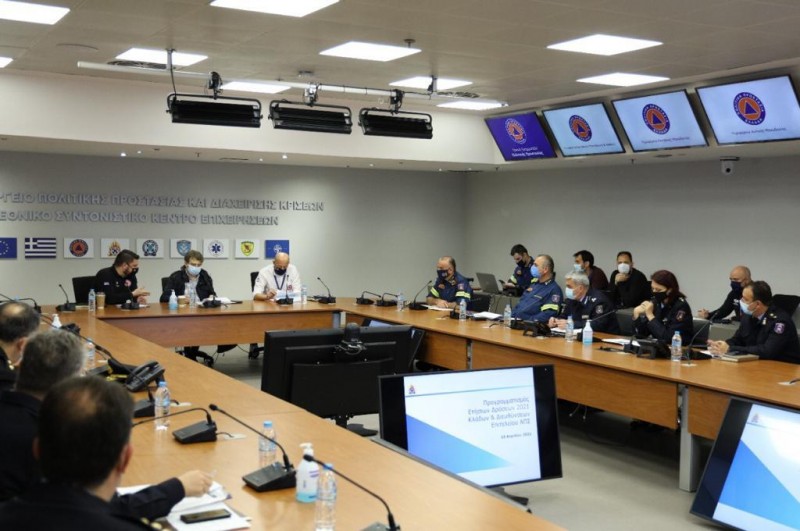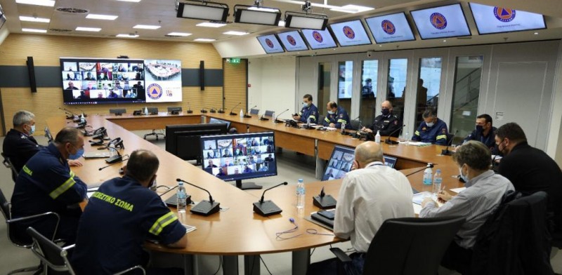 Στη συνέχεια, πραγματοποιήθηκε μέσω τηλεδιάσκεψης Σύσκεψη Επιχειρησιακού Σχεδιασμού, στην οποία μετείχαν ο Διοικητής του Εθνικού Συντονιστικού Κέντρου Επιχειρήσεων και Διαχείρισης Κρίσεων (ΕΣΚΕΔΙΚ), Υποστράτηγος Σπύρος Βαρσάμης., οι έξι περιφερειακοί Συντονιστές Επιχειρήσεων ΠΣ, καθώς και οι Διοικητές των 13 Περιφερειακών Πυροσβεστικών Υπηρεσιών της χώρας.