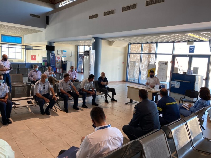 Τελευταίος σταθμός της χθεσινής περιοδείας του, ήταν το αεροδρόμιο της Μυτιλήνης όπου και εκεί πραγματοποιήθηκε αντίστοιχου περιεχομένου σύσκεψη με όλους συναρμοδίους φορείς.
