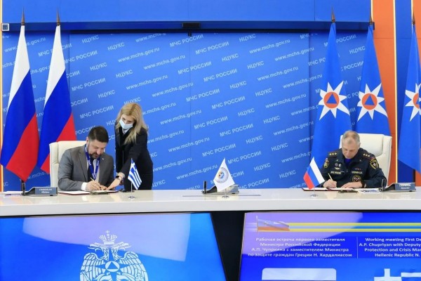 Συζητήθηκε, επίσης, η προώθηση της υφιστάμενης Συμφωνίας Ελλάδας-Ρωσίας για τη συνεργασία στον τομέα της πρόληψης και της αντιμετώπισης φυσικών και ανθρωπογενών καταστροφών, καθώς και η στρατηγική συνεργασία των δύο χωρών ως κράτη-μέλη του Οργανισμού Οικονομικής Συνεργασίας Ευξείνου Πόντου (ΟΣΕΠ), ιδίως η περαιτέρω προώθηση κοινών πρωτοβουλιών στο πλαίσιο της Συμφωνίας για την συνεργασία στον τομέα παροχής έκτακτης βοήθειας και άμεσης ανταπόκρισης σε φυσικές και τεχνολογικές καταστροφές που έχει υπογραφεί μεταξύ των μελών του Οργανισμού. Επιπλέον, ο Νίκος Χαρδαλιάς και ο Alexander Chupriyan υπέγραψαν πρωτόκολλο συνεργασίας μεταξύ της Πολιτικής Προστασίας και της EMERCOM σε μια σειρά από θέματα κοινού ενδιαφέροντος.