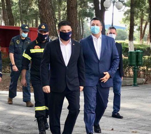 Κατά την επίσκεψη, τον Υφυπουργό Πολιτικής Προστασίας και Διαχείρισης Κρίσεων συνόδευε ο Αρχηγός του Π.Σ, Αντιστράτηγος Στέφανος Κολοκούρης, ο Υπαρχηγός του Π.Σ, Αντιστράτηγος Ιάκωβος Κλεφτοσπύρος, καθώς και στελέχη της Γενικής Γραμματείας Πολιτικής Προστασίας. Παρόντες στην τελετή ήταν επίσης ο Συντονιστής Επιχειρήσεων Κεντρικής Μακεδονίας, Ανατολικής Μακεδονίας και Θράκης, Υποστράτηγος Σπυρίδων Βαρσάμης, καθώς και ο Διοικητής της 2ης ΕΜΑΚ, Αρχιπύραρχος Δημήτριος Καρασαββίδης.