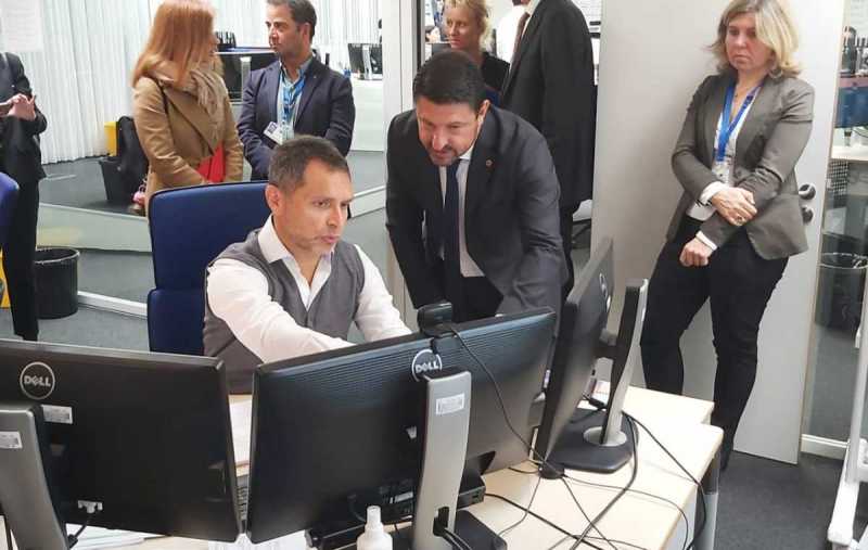 Στην συνέχεια ο Γενικός Γραμματέας ξεναγήθηκε στις εγκαταστάσεις του Ευρωπαϊκού Συντονιστικού Κέντρου Αντιμετώπισης Εκτάκτων Αναγκών (ERCC) όπου τον υποδέχτηκε ο επικεφαλής του κέντρου Antoine Lemasson και τον ενημέρωσε για τις λειτουργιές του.