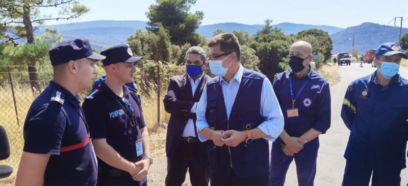 Τέλος, ο Ευρωπαίος Επίτροπος είχε την ευκαιρία να συνομιλήσει με Πυροσβέστες - μέλη της πολωνικής και της ρουμανικής αποστολής που βρίσκονται στην Ελλάδα (Βίλια Αττικής) για παροχή συνδρομής προς αντιμετώπιση των πυρκαγιών που έπληξαν τη χώρα, καθώς και με Έλληνες συναδέλφους τους. Υπενθυμίζεται ότι η κινητοποίηση για την παροχή συνδρομής προς τη χώρα μας διοργανώθηκε μέσω του Ευρωπαϊκού Μηχανισμού Πολιτικής Προστασίας, με αξιοσημείωτη ανταπόκριση στο ελληνικό αίτημα από 24 συνολικά κράτη (εκ των οποίων 11 κ-μ της ΕΕ). Ο κ. Lenarčič, συνοδευόμενος από τον Γενικό Γραμματέα Πολιτικής Προστασίας, ευχαρίστησε θερμά όλους τους Πυροσβέστες στο πεδίο για τη συνεισφορά τους, επισημαίνοντας ότι κάθε ενεργοποίηση του Μηχανισμού επιβεβαιώνει την αξία της αλληλεγγύης στο πλαίσιο της ΕΕ.