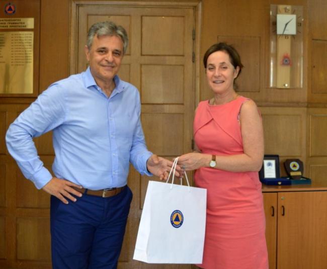 Ο Γενικός Γραμματέας αφού ευχαρίστησε την Πρέσβη, την ενημέρωσε για τους στόχους, το περιεχόμενο και τις προτάσεις αναμόρφωσης του συστήματος πολιτικής προστασίας κατόπιν της εξαγγελίας του Πρωθυπουργού.