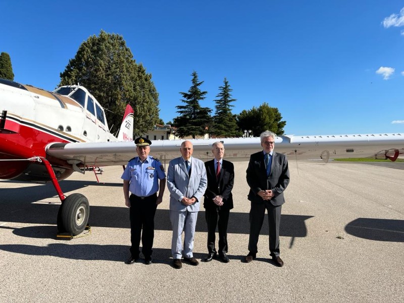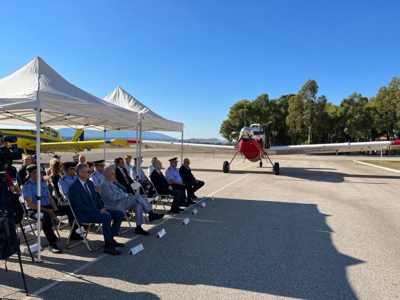 Σε μια λιτή τελετή που πραγματοποιήθηκε σήμερα στην Αεροπορική Βάση Δεκέλειας, το Υπουργείο Κλιματικής Κρίσης και Πολιτικής Προστασίας ευχαρίστησε την Ελληνική Ένωση Τραπεζών (ΕΕΤ) και το Κοινωφελές Ίδρυμα Ιωάννη Σ. Λάτση για τη σημαντική δωρεά που πραγματοποίησαν προς το Πυροσβεστικό Σώμα, μέσω μίσθωσης τεσσάρων πυροσβεστικών αεροσκαφών Air-Tractor. Επιπλέον, χάρη στη χρηματοδότηση της ΕΕΤ και του Κοινωφελούς Ιδρύματος Ιωάννη Σ. Λάτση, φέτος για πρώτη φορά έγινε χρήση επιβραδυντικού υγρού από το Πυροσβεστικό Σώμα για την αντιμετώπιση δασικών πυρκαγιών με ειδική εγκατάσταση ανάμιξης στην Αεροπορική Βάση Δεκέλειας.
