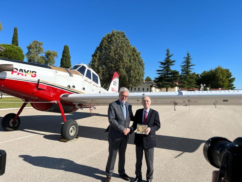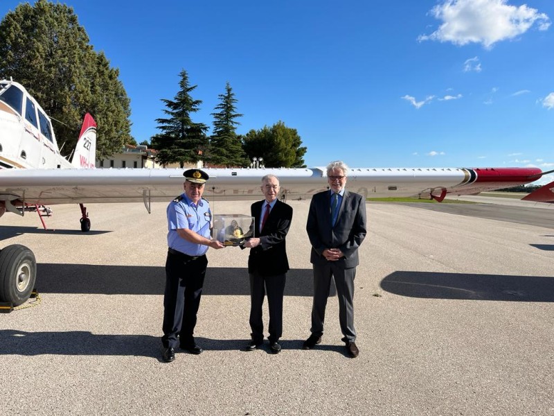 Ο Υπουργός κ. Χρήστος Στυλιανίδης, ευχαρίστησε θερμά την ΕΕΤ και το Κοινωφελές Ίδρυμα Ιωάννη Σ. Λάτση και προσωπικά τους παριστάμενους κκ. B. Ράπανο και Π. Καλαντζή, για την ιδιαίτερου συμβολισμού πρωτοβουλία, σημειώνοντας: «Είναι μεγάλη χαρά και τιμή να είμαστε σήμερα εδώ, μπροστά σε αυτά τα αεροσκάφη, που χάρη στην πολύτιμη δωρεά σας, κατορθώσαμε να έχουμε φέτος στη διάθεσή μας για την ενίσχυση της δασοπροστασίας της χώρας μας. Σας ευχαριστούμε θερμά για την προσφορά σας.