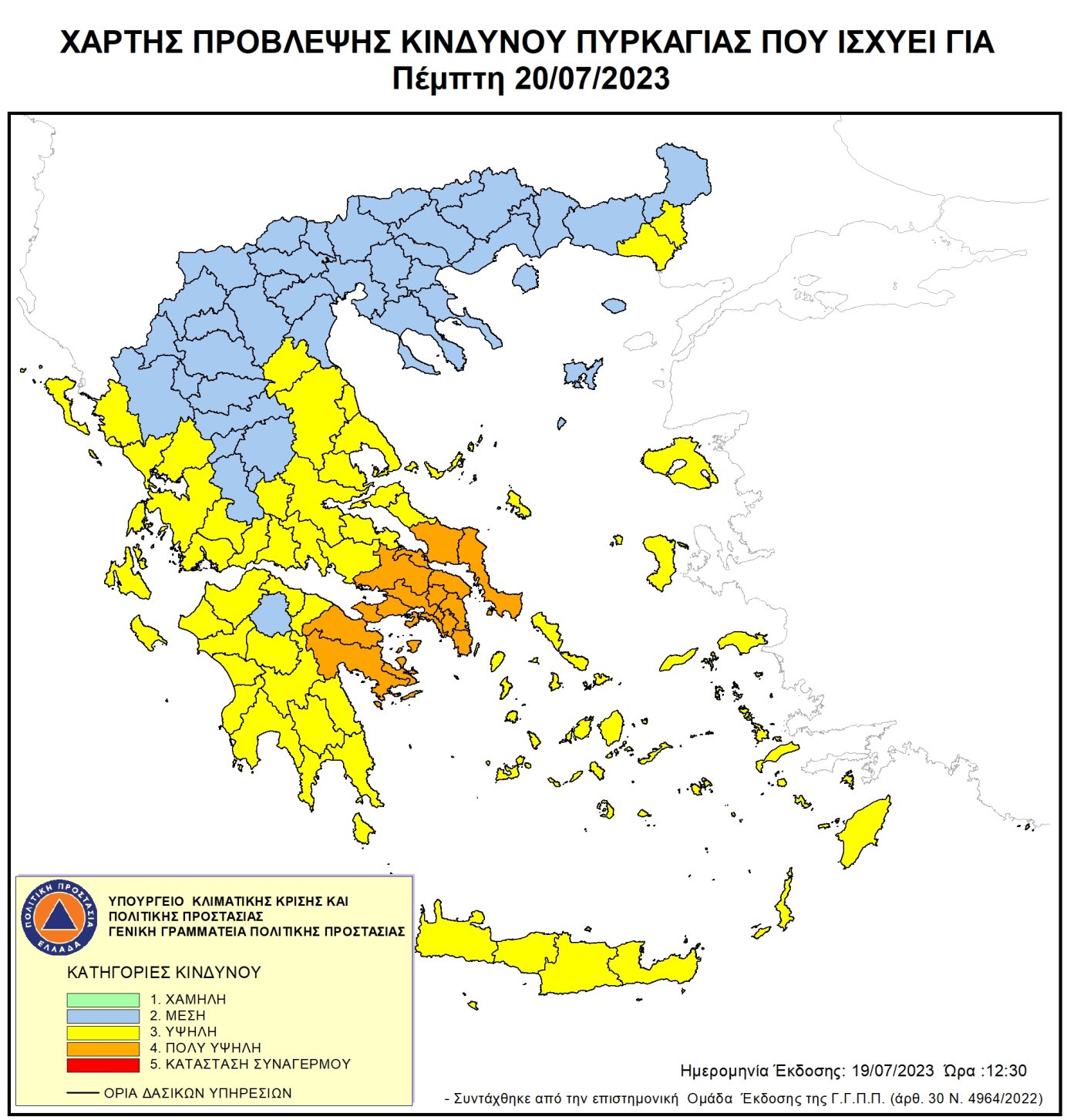 Πολύ υψηλός κίνδυνος πυρκαγιάς (κατηγορία κινδύνου 4) για αύριο Πέμπτη 20 Ιουλίου 2023