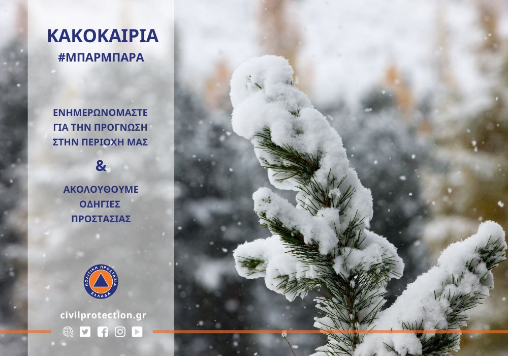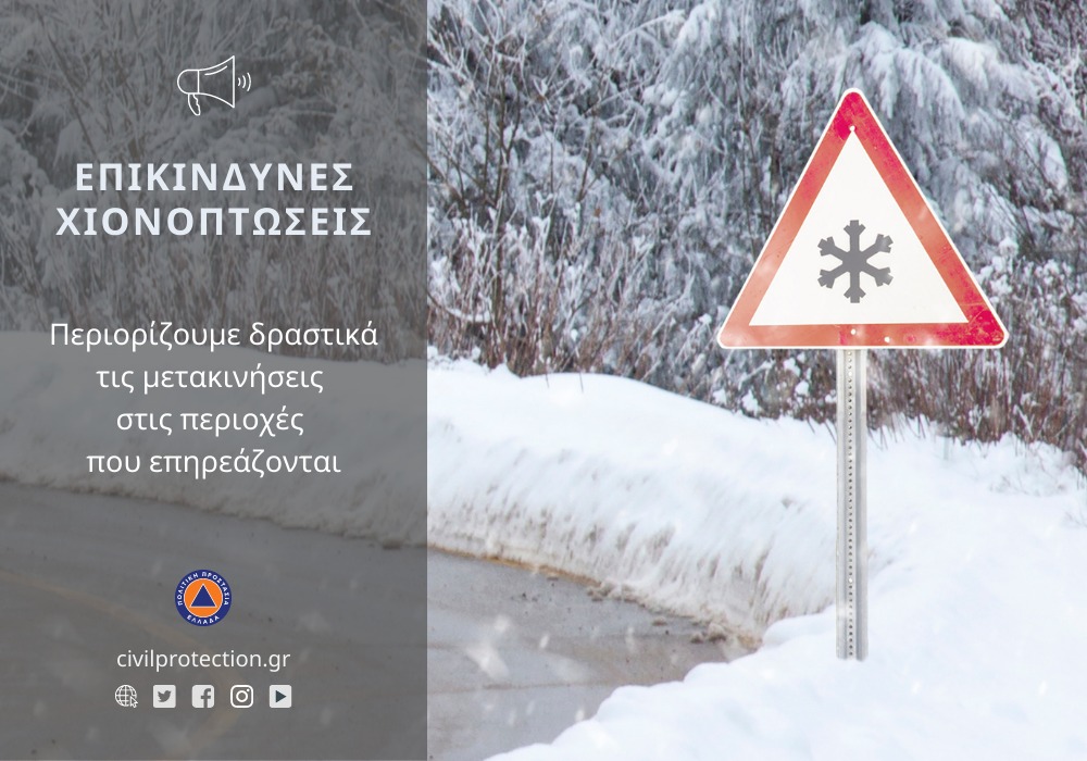 Νέα επικαιροποίηση Δελτίου Επικίνδυνων Καιρικών Φαινομένων Κατά περιόδους πυκνές χιονοπτώσεις και σήμερα Τρίτη 07-02-2023 στις ανατολικές και νότιες περιοχές της χώρας