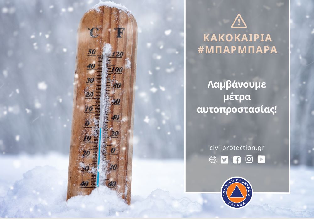 Νέα επικαιροποίηση Δελτίου Επικίνδυνων Καιρικών Φαινομένων Νεότερα στοιχεία για την εξέλιξη της κακοκαιρίας με πυκνές χιονοπτώσεις και παγετό για σήμερα Τρίτη και αύριο Τετάρτη
