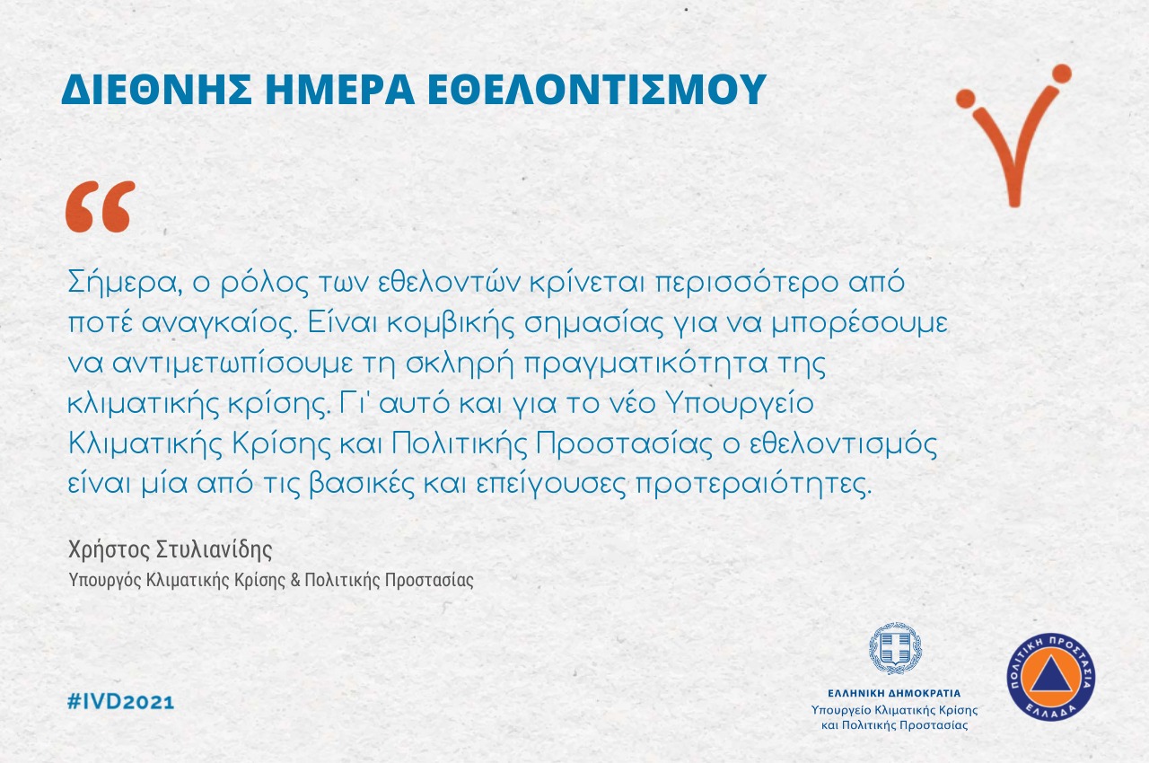 Μήνυμα του Υπουργού Κλιματικής Κρίσης και Πολιτικής Προστασίας Χρήστου Στυλιανίδη για τη Διεθνή Ημέρα Εθελοντισμού